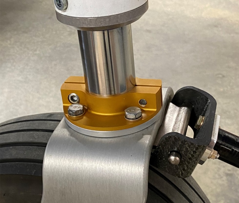ESCO Strut Flange Brace for 235/320/360/IV/ES. Provides a mechanical back-up to the Loctite joint between the chrome tube and the flange.