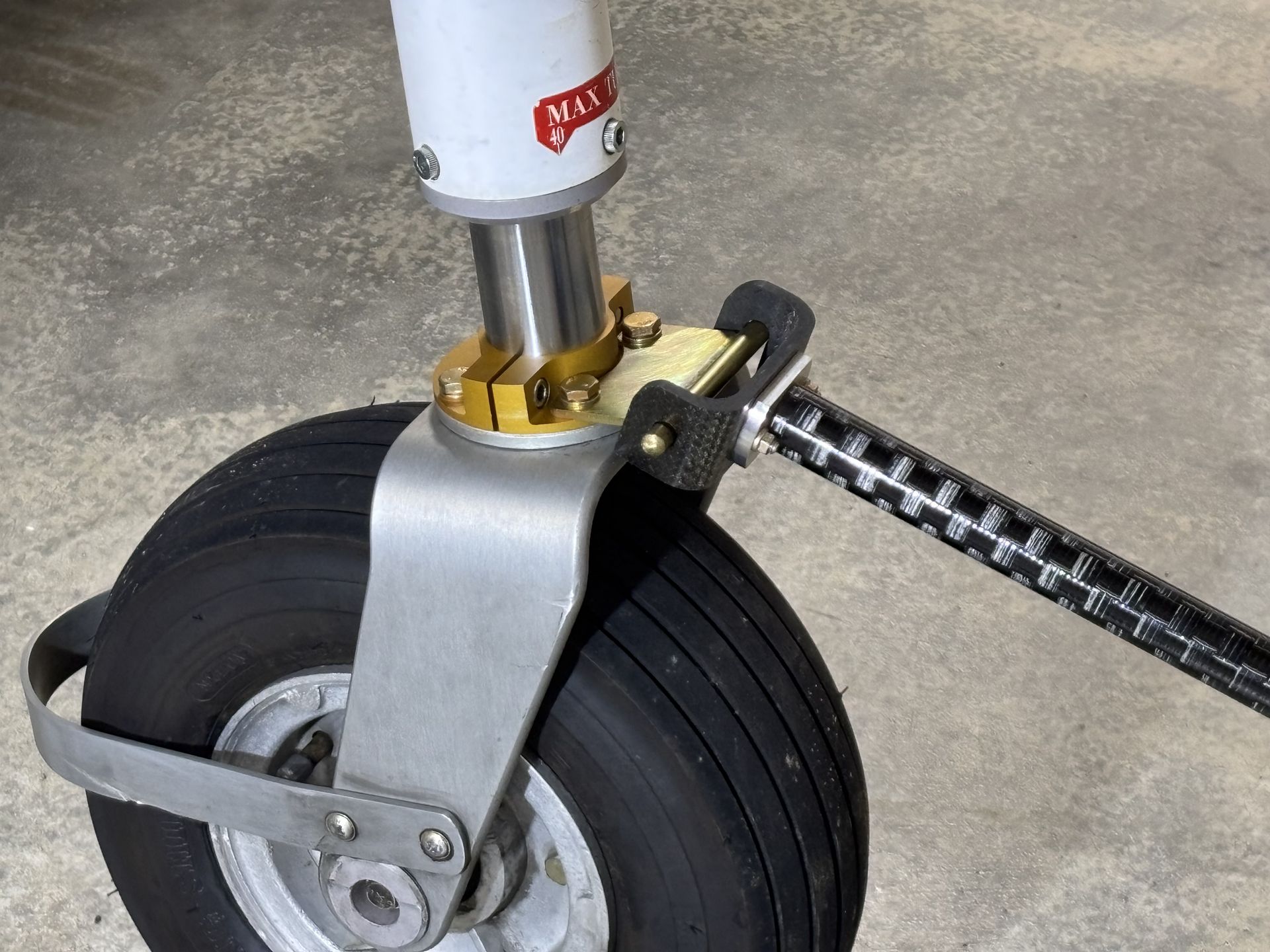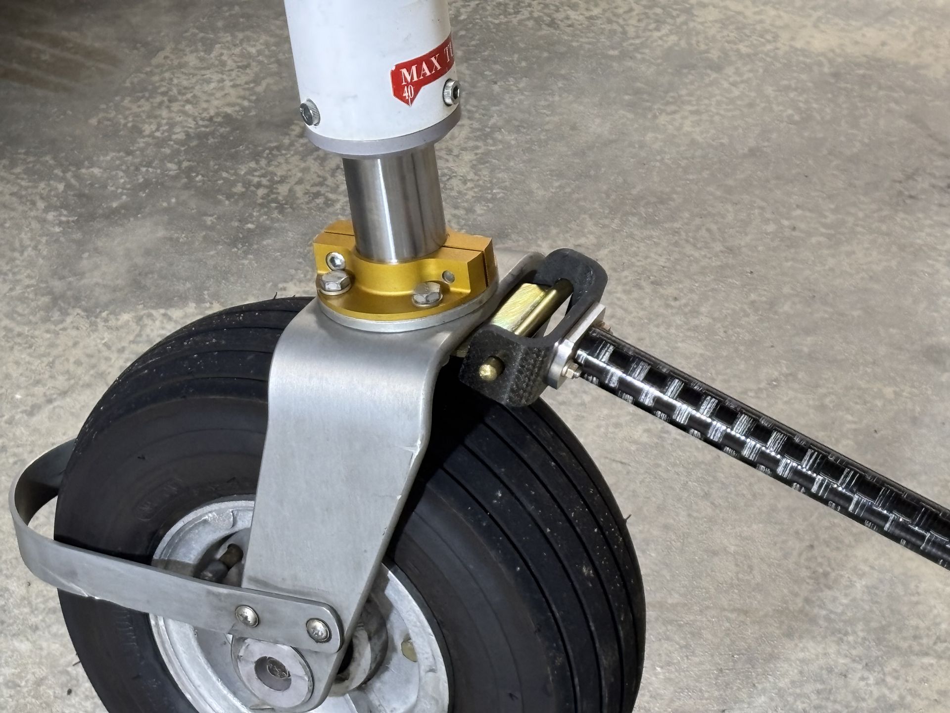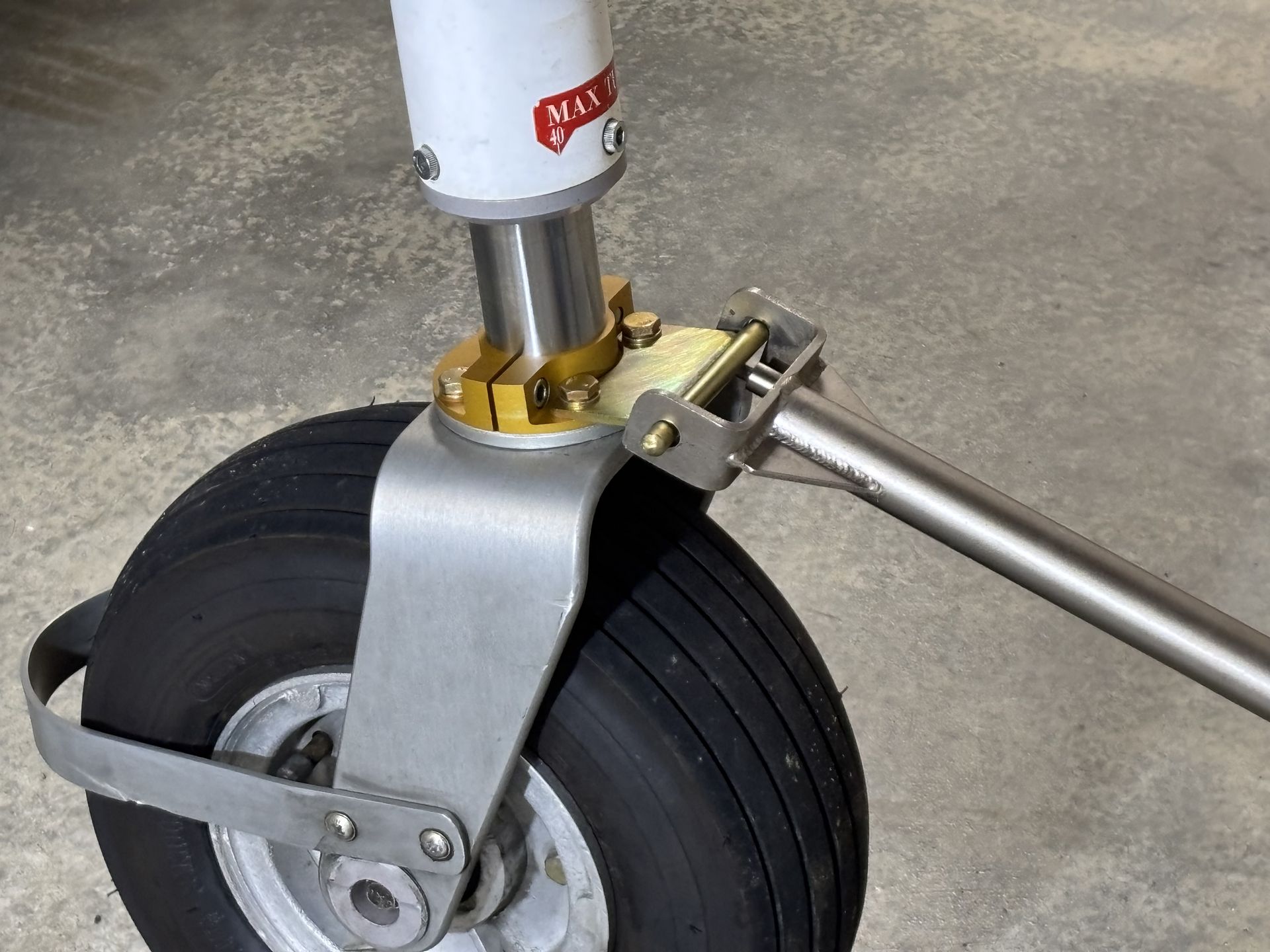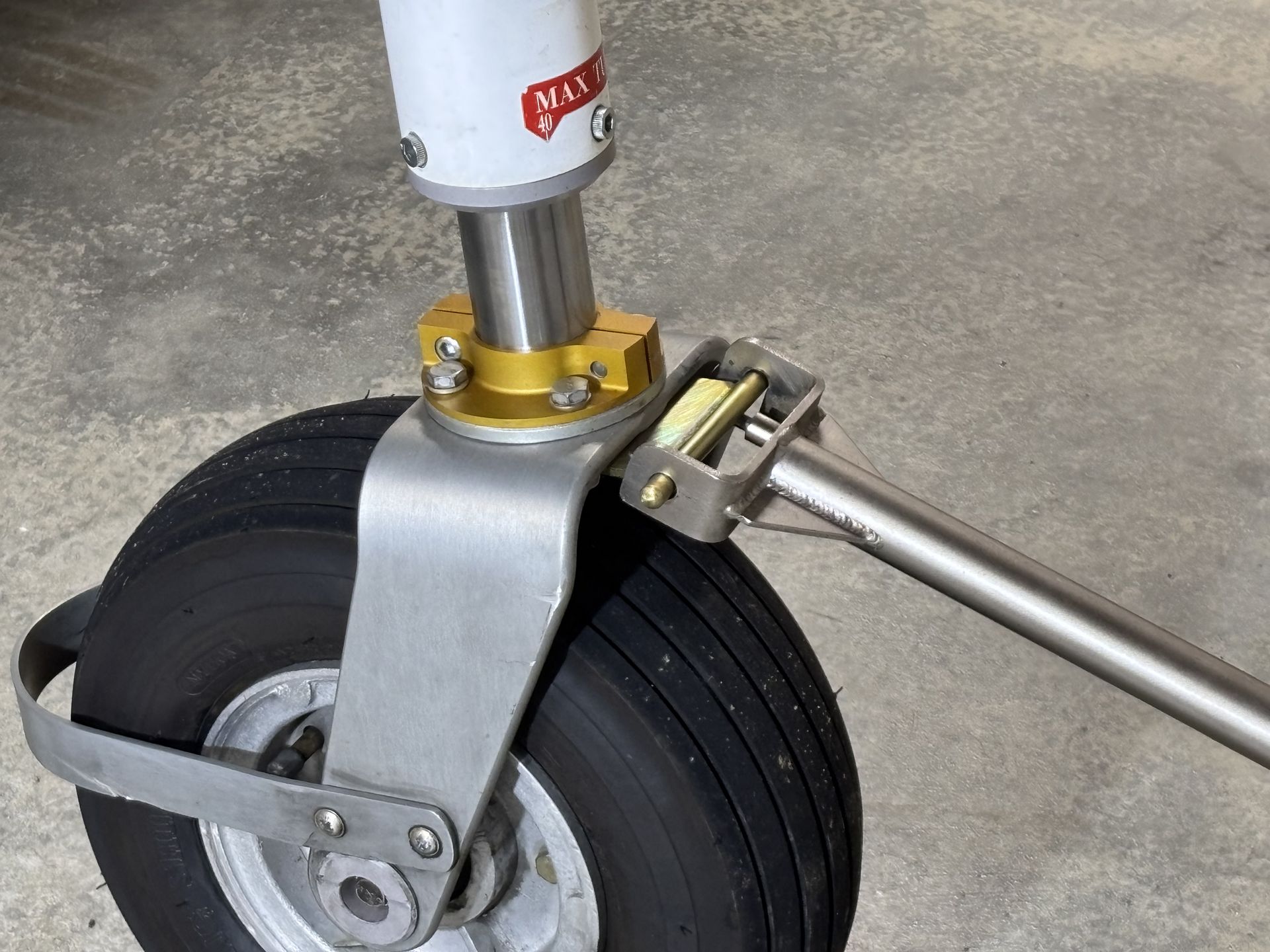 This Tow Bar Bracket is used on the Lancair 235/320/360/IV in conjunction with the Tow Bars originally supplied by Lancair or after-market versions with the same fork arrangement.